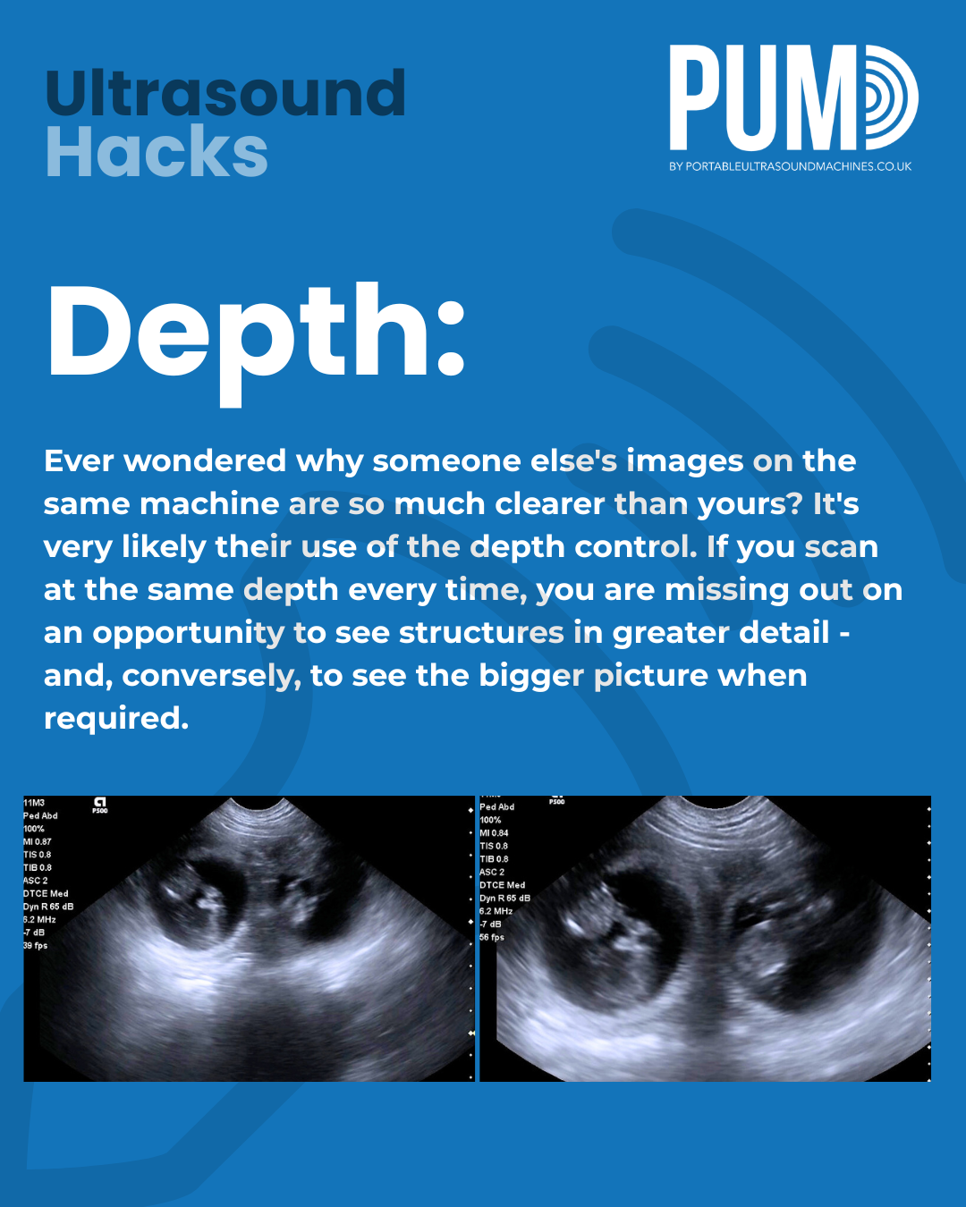 Depth is something you will adjust constantly during a scan, so getting comfortable with it early will make your workflow smoother and more intuitive.